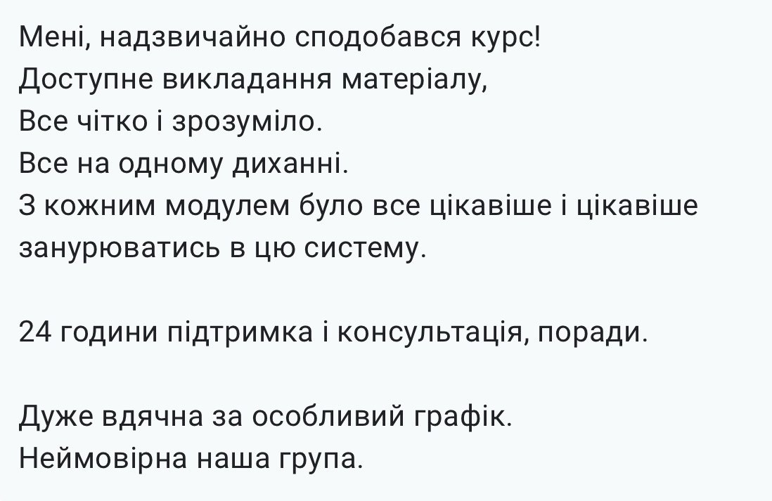 + 8 індивідуальних зустрічей онлайн протягом ще 2 місяців після навчання.